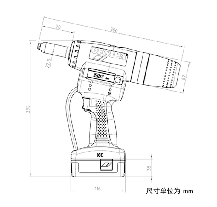 工作行程達(dá)25mm,可用于較長的抽芯鉚釘